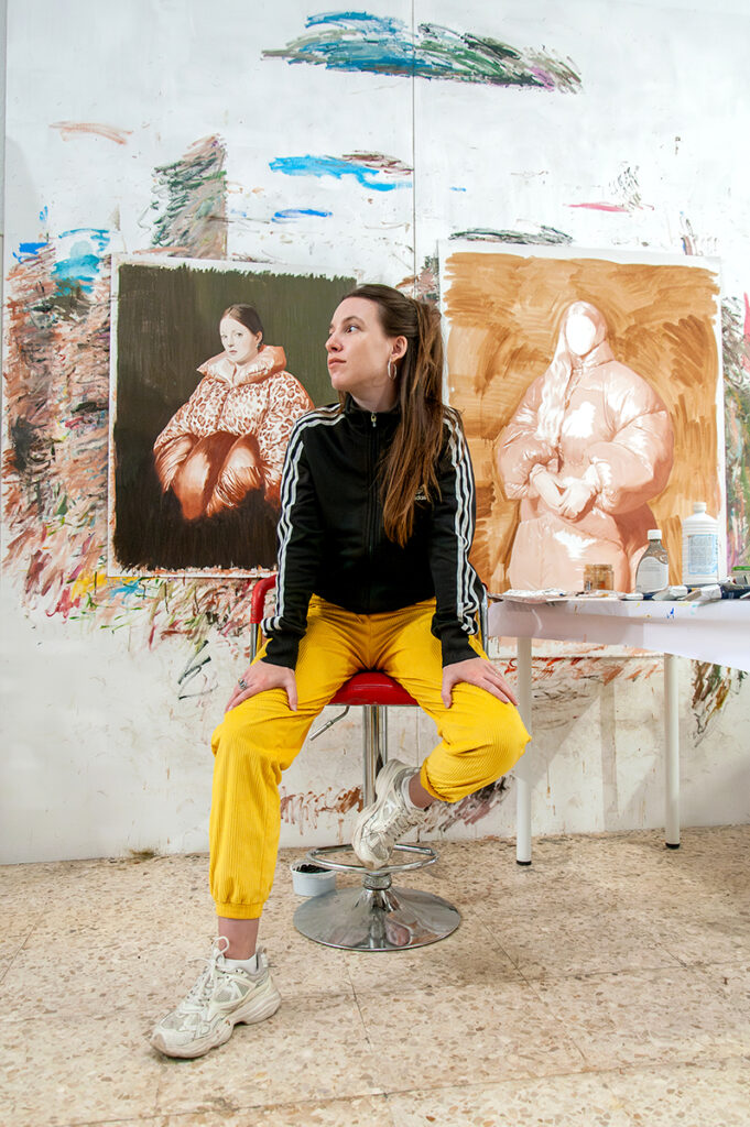 Nieves González (Huelva, 1996) is a visual artist whose work draws from classical painting and establishes a dialogue with contemporary contexts, engaging with the aesthetic of a generational language that reflects the complexity of our time.