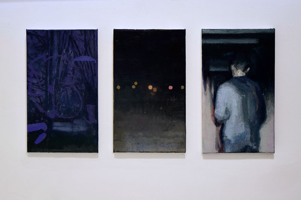 Jose Carlos Naranjo. “Tres lugares desconocidos (I,II,II)” 2024, Oil on canvas. 27 (width) x 16 (height) cm x 3